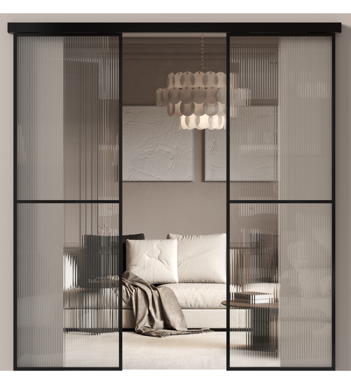 Межкомнатная перегородка МКП-1 Раздвижная Двустворчатая, на каркасе Алюминий, со стеклом, цвет — Черная эмаль (RAL 9004)
